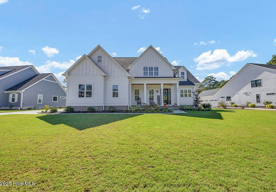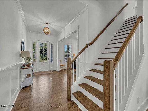 Welcome to 3829 Bay Colony Road, a beautifully designed five-bedroom home in one of Leland's most sought-after gated communities, The Bluffs on the Cape Fear. Built with timeless Hardie-board siding and elegant architectural details, this residence blends upscale finishes with comfortable, livable spaces.