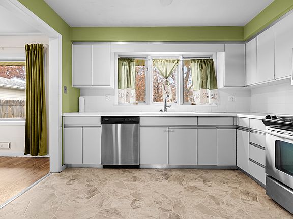 Step inside this charming tri-level home that instantly welcomes you with its sunny yellow front door and inviting covered porch. This light-filled, open-concept residence features three bedrooms and 1.5 baths, blending space with distinct character throughout. The expansive main level showcases gleaming hardwood flooring in the living room, dining room, hallway, and all bedrooms, highlighted by oversized windows that bathe the space in abundant natural light. The well-appointed kitchen is equipped with crisp white cabinetry and stainless steel appliances, boasting a wall of windows that overlooks the fenced backyard and its cozy brick fireplace, perfect for outdoor grilling. Ideal for entertaining, the spacious living and dining areas flow seamlessly together, while the private quarters include a large primary bedroom and two additional bedrooms, all featuring hardwood floors. The lower-level family room expands your living space and opens directly to the private yard and a convenient half bath. This move-in-ready home offers peace of mind with significant recent upgrades, including luxury vinyl plank flooring and carpeting installed in 2021, a fully updated bathroom, a new privacy fence, and a three-year-old furnace, all completed by an attached one-car garage for added convenience and storage.