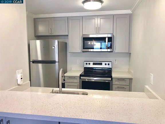 All brand new ground floor, end-unit beautifully renovated with full permits & engineering from electrical plugs/circuit breaker to kitchen cabinets, quartz counter-tops, SS appliances, lights, bathroom, flooring & doors. The condo is a one bedroom & a large den which has been converted into the full 2nd bedroom with a closet as part of the remodeling. The washer/dryer closet was added with access from patio. Large private backyard & patio with some view of the hills. Quiet complex within minutes to Freeway, restaurant & shops. No rental restrictions.