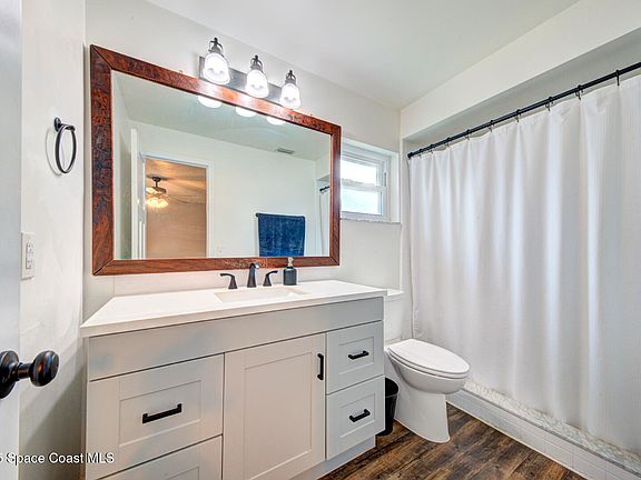 YOUR NEW HOME IS MOVE-IN READY! This beautifully maintained 3 bedroom, 2 bath split-floorplan home is full of updates and charm. Featuring IMPACT WINDOWS, UPDATED KITCHEN overlooking an OPEN floor plan with TWO CAR GARAGE. Beautiful laminate flooring throughout - NO CARPET, designed for both style and function. An enclosed patio with AC offers a spacious retreat with room to play and enjoy views of the FENCED BACKYARD! Junny Rios Martinez Park just up the street! You'll love the easy access to I-95, taking you quickly to Port Canaveral, Kennedy Space Center and Orlando Theme Parks . With a 2019 roof, 2023 AC, and no HOA, this home is perfect for first-time buyers, families or anyone looking for easy to care for, one story home.