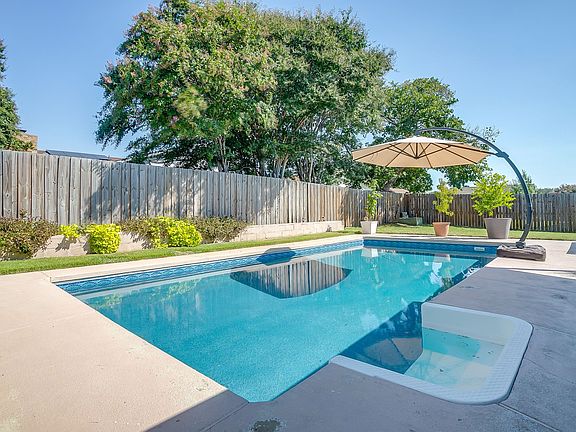 MULTIPLE OFFERS RECEIVED - Deadline for Highest & Best is Monday Oct. 6th at 5pm. Welcome to 3829 Walnut Dr., a beautifully updated Bedford gem with the perfect mix of style, comfort, and fun! This charming single-story home has been thoughtfully refreshed with recently-painted siding and trim, giving it lasting curb appeal and protection. Step inside to find a bright and open living area featuring surround sound speakers, a cozy brick fireplace, and updated vinyl windows that let in loads of natural light. The kitchen is functional and inviting, flowing seamlessly into the dining and living spaces for easy entertaining. The bedrooms offer plenty of versatility, including a nursery with brand-new carpet (2024), while the primary suite provides space to unwind. A newly installed Ecobee thermostat, recently serviced HVAC, cleaned ducts with a HALO LED antimicrobial light add to the peace of mind, along with a possible hospital grid location that has avoided power outages during storms. Step outside to your own backyard paradise! A sparkling in-ground pool with a brand-new liner (2025) and automatic cleaner invites you to cool off, while a raised hot-tub, covered patio, and outdoor surround sound make it the ultimate spot for year-round relaxation. The brand-new back fence adds privacy and security, with plenty of green space for kids, pets, or gardening. Practical upgrades include a whisper-quiet, Wi-Fi and camera-enabled garage door opener with keyless-smartphone entry, all-electric systems (no gas), and newer vinyl windows throughout most of the home. Centrally located in the heart of Bedford with exciting retail nearby - Sprouts and HEB are coming soon! You’ll have quick access to shopping, dining, and entertainment while enjoying your own private retreat at home.
