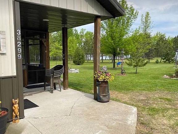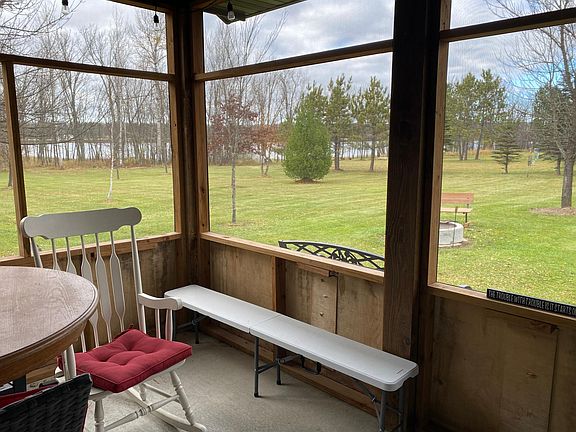 Lakefront livingScreened-in porchEasy water accessLevel lake lotCustom cement fire ringMowed trailsInsulated and heated garage