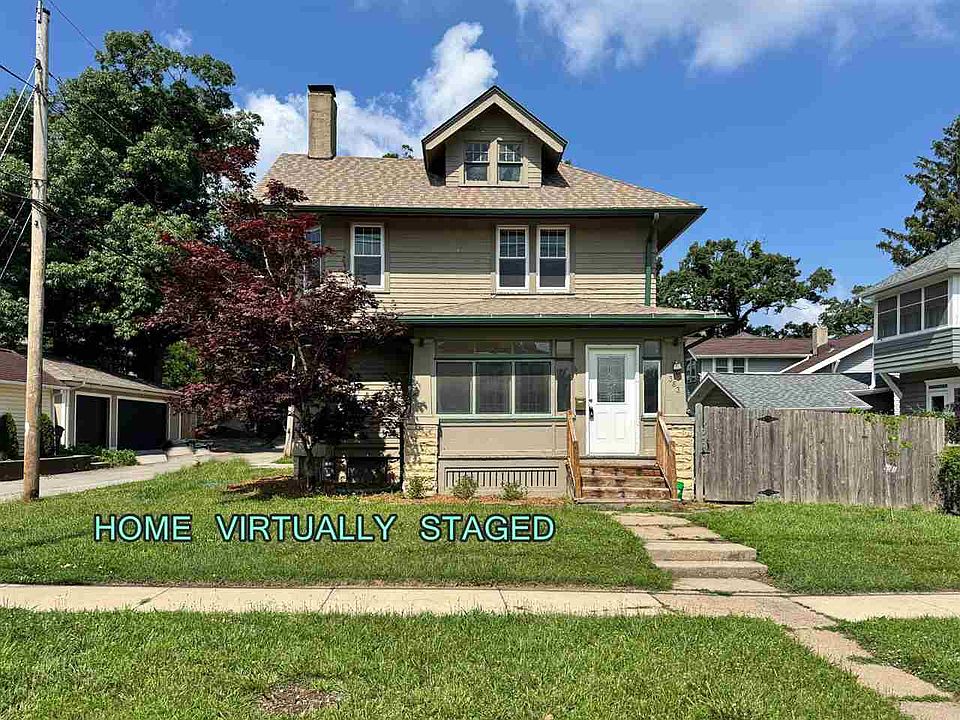 Imagine yourself living in a charming home that's been around since 1909, with a rich history and character that's just waiting to be loved. As you walk in, you'll be greeted by the beautiful open stairway and stunning oak floors that set the tone for a warm and inviting atmosphere. This amazing 3 bedroom, 2 bathroom home has so much to offer, from the cozy wood-burning fireplace that's perfect for snuggling up on chilly evenings, to the spacious formal dining area and large kitchen that's ideal for cooking up a storm. And when you need some fresh air, just step out onto the sitting porch or head up to the upper sitting porch for a relaxing spot to unwind.The fenced yard is perfect for kids or pets to play, and with most of the windows being newer (2017), you can enjoy plenty of natural light pouring in. Plus, the new roof (2023) gives you peace of mind knowing you're covered for years to come. ** virtually staged The partially finished basement offers plenty of possibilities for a home gym, hobby room, or extra storage, and the large bedrooms are perfect for a growing family or for use as a home office. And let's not forget the walk-in attic, which is just begging to be converted into a cozy reading nook or secret hideaway! This Arts and Crafts-style home is being sold as-is, but with a little love and TLC, it could be truly t