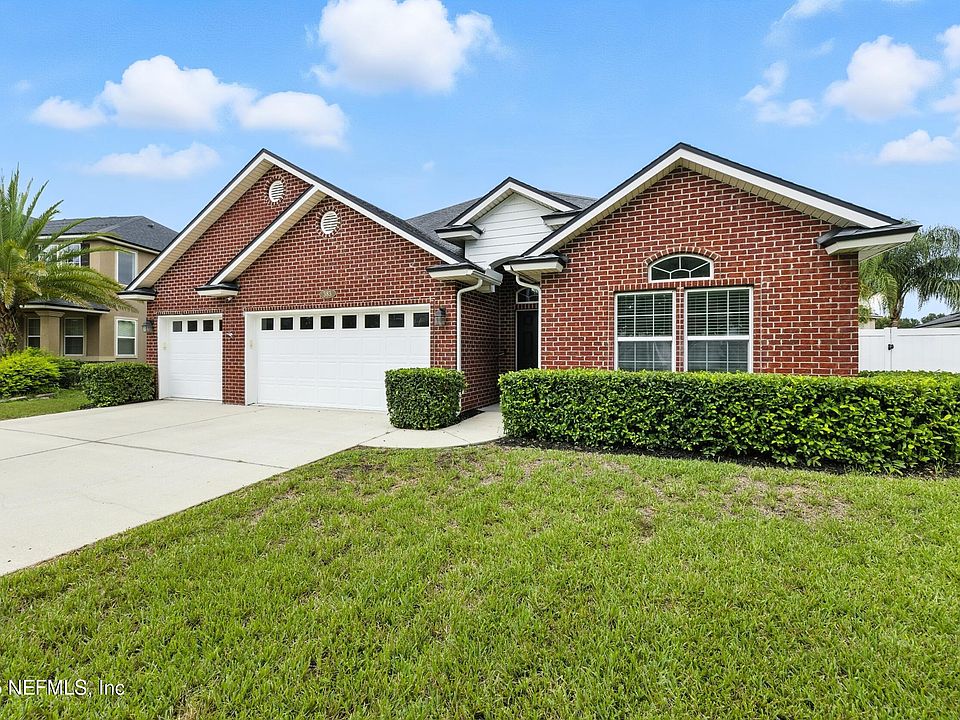 AMAZING HOME!!! This fresh and clean 5 bedroom, 4 FULL bathroom home with extra high 10-FT CEILINGS, a 3-CAR garage, and a durable low-maintenance brick exterior is priced to sell! FRESHLY PAINTED and move-in READY! All bedrooms and living areas are on the first floor, with a spacious bonus/flex room and full bath upstairs. Relax on the SCREENED LANAI overlooking the FULLY FENCED backyard. Located in a TOP-RATED school district, this VIBRANT COMMUNITY has resort-style amenities including a HEATED lap pool for year-round fitness, kids pool with twisting WATER SLIDE, tennis, PICKLEBALL, basketball, and sand volleyball courts, NATURE TRAILS, scenic mature landscaping, FAMILY-FRIENDLY EVENTS, food truck Fridays and so much more!! Conveniently located in the growing World Golf Village area between Jacksonville and historic St Augustine and only a short drive to the BEACH!!