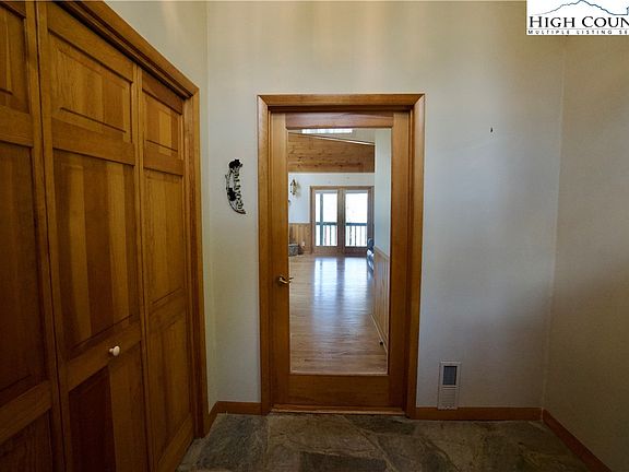 Well-Maintained Mountain Home in Fleetwood Falls. Ideal size for full time living or 2nd home. This 3BR, 3.5BA home sits on gently sloping wooded lot that runs from road to road, providing a nice back yard buffer. Circular driveway,2 car garage, with heated workshop addition in 2019, off garage. Real Stone entry way, leads into great room with stone fireplace, vaulted ceiling, wood flooring, knotty pine wainscoting & ceiling w/ French Doors leading to covered back porch. Main floor BR and en suite BA. Galley kitchen with Wormy Chestnut cabinets, butcher block countertops, and S/S appliances. Small loft on upper level, with office, private deck, & large master with 2 closets, with private covered porch, en suite BA wormy chestnut, double vanity, & granite tops, enclosed shower and jetted tub. Laundry Chute that leads from upper level to basement. Lower level den is a great entertaining area, TV room, with Wood stove. Bar in lower level, with sink and mini-ref. Guest bedroom, full bath and laundry room. New standing rib metal roof ( no nails) in 2019, 3 zone HVAC, great storage for all mtn toys, built in safe, Mature landscaping , 20 min to Boone 10 min to West Jefferson. See today