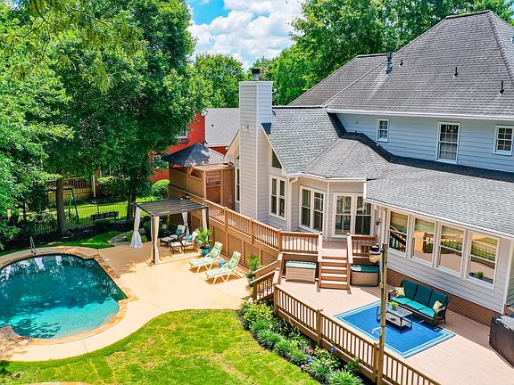Looking for an amazing home filled with 2 Master suites, large rooms, lots of entertaining space, finished basement, fenced in yard and swimming pool ready for summer time fun? This is the house! Professionally landscaped, this home offers lots of updates and custom finishes! Hardwoods on main level, new carpet in all secondary bedrooms and new ceramic and travertine tiling in the main level baths to name a few. Upon entering, your guests and family will immediately be amazed at the view to the 2 story vaulted great room and 'floor to ceiling' stack stone fireplace. Step into the sunny "eat in" dining space with views to the backyard deck & pool. Oversized updated kitchen offers white cabinetry, granite tops, and updated stainless appliances giving any cook the space needed for preparing great meals! Separate formal dining room can seat 10+ for entertaining guests. A beautiful Sunroom for hanging out and enjoying the view to the fantastic backyard - just open up the windows for a fabulous breeze. Master on the main with vaulted ceiling and glass door onto a private patio with Jacuzzi. Master bath has vaulted ceiling, lots of windows and new travertine flooring. There are 3 large bedrooms on the upper level, with one of them being a secondary Master, if you need it. Tons of storage throughout including walk in closets in 3 bedrooms. The finished basement has 2 large rooms, full bath and office - great for movies, personal gym and a game room. and additional storage space. The garage has been recently painted including the floor - this is a nice touch! Double Back decks showcases the level, fenced backyard and swimming pool. This community has NO HOA fee ! Close to Covered Bridge, Silver Comet Trail, parks and close to Truist/SunTrust park!