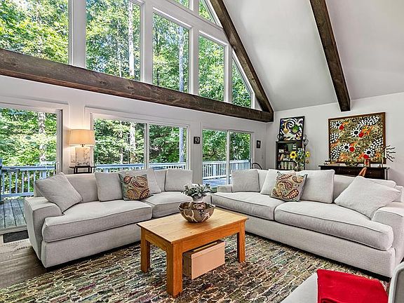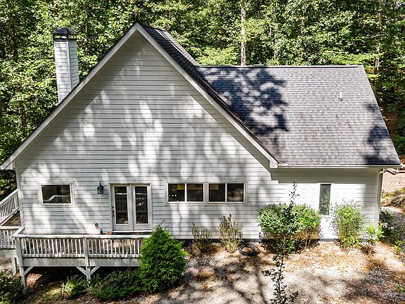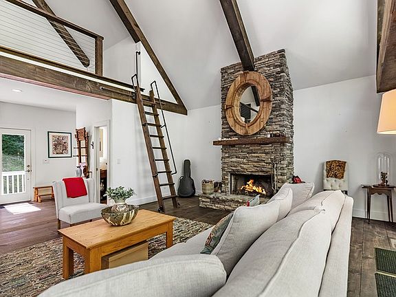 Discover an extraordinary property that truly needs to be seen to be believed! Nestled just off Dahlonega's Historic Public Square and unencumbered by an HOA, this custom built 3 bed, 2.5 bath home sits on a 2 +/- acre lot that features a picturesque creek with cascading waterfall, providing a soothing soundtrack of peace and serenity. The main level of the home is open and bright, illuminated by a soaring ceiling outlined in beams and framed by a wall of floor to ceiling windows and sliding glass doors that open to the outdoor deck overlooking the creek. The cozy ambiance is enhanced by the natural 12-inch-wide hand finished hardwood flooring and a stacked stone fireplace, creating a perfect setting for relaxation and gatherings. Perched above the great room and accessible by a library ladder is an open loft, providing a cozy media room. An open kitchen and large island bar are perfect for entertaining. The warmth and coziness of the main level is extended to the Primary Suite where large picture windows and a high beamed ceiling continue to bring the natural beauty of the mountain landscape indoors. The Primary Bath features natural slate flooring with a walk-in shower and floor to ceiling window. An ample walk-in closet and double vanity complete this beautiful suite. Two guest bedrooms, a guest bath with an infinity glass shower are located on the terrace level along with a cozy Den. A short walk through the woods along the property's noisy creek reveals a small artisan styled bunkhouse, perfect for a yoga studio or primitive camping for adventurous youngsters. The close proximity to the unique shopping and dining experiences of downtown Dahlonega and the University of North Georgia makes this a great primary residence or vacation home. This rare gem is a must see so schedule your showing before this golden opportunity disappears.