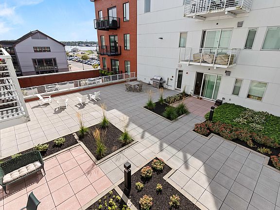 Welcome to a rare opportunity at celebrated Hobson's Landing in the Old Port! This like-new 1 BR, 1 BA unit is one of a select few with an elevated, private deck boasting unobstructed year-round water views of Portland's bustling Casco Bay. Completely move-in ready, you will find this sun-filled condo with elegant finishes has everything you're looking for. This home features a laundry room with storage, a chef's kitchen with gleaming quartz counters, tile backsplash and generous island with seating for 4. Enjoy an open concept living space for the kitchen, dining and living area. The natural gas fireplace adds ambiance to the living room. Sliders off the living room lead to the deck overlooking the well landscaped courtyard, where you can spend hours enjoying the view of the harbor and Commercial Street activities. The primary bedroom has an additional entry door to the bathroom. The tiled bathroom features double vanities, a large walk in shower, and radiant floor heat. Energy efficient heat pumps for heating and cooling keep you comfortable year round. Hobson's Landing is more than a home—it's a community. Amenities unrivaled in Portland include a secure lobby with concierge, a fitness studio, a spacious common area/clubroom with full kitchen, separate co-working space, dog wash, a shared courtyard with gas grills, a reservable on-site guest suite, private storage unit, shared bikes, EV charging stations and a complimentary ride-share vehicle. This unit also comes with one deeded garage parking space ideally located right next to the entry door! With welcoming common spaces designed for convenience and connection, Hobson's Landing offers unparalleled amenities in a location designated as a ''A Walker's Paradise'', with a walkability score of 94! Step outside your door to Portland's celebrated restaurants, galleries and shops on charming cobblestone streets, and the scenic Old Port.