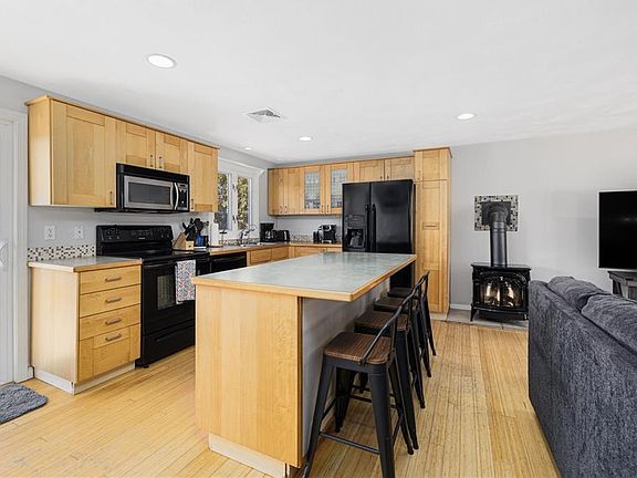 Situated on a fantastic corner lot in Jamestown Shores, this classic raised ranch/split-level home offers a flexible layout. The main level features an inviting open living room with a cozy gas stove, seamlessly connected to the kitchen and dining area. Two bedrooms options and a full bath complete this level. The lower level, with its separate covered entry, is perfect for a mudroom or additional living space and includes an efficient wood stove. A full bath, along with a spacious extra room featuring a gas fireplace, is currently used as the primary bedroom, which provides versatility. A third room on this level serves as an ideal guest space, office, or bonus room. Outside, a generous deck overlooks the fenced-in yard, complete with a garden shed for storage. With its adaptable layout and separation of living areas, this home is a great opportunity for those seeking space and flexibility. An excellent option for multi-generational living with distinct living spaces on each level.