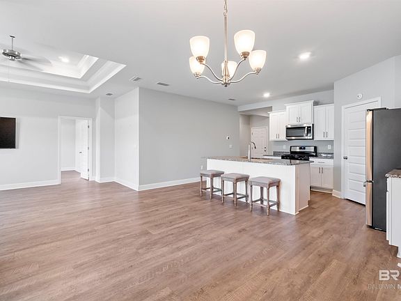 Nestled near the white sand beaches of the Alabama Gulf Coast, this beautifully designed Gold Certified home features a charming Coastal look and an open floor plan perfect for relaxed living and entertaining. The spacious kitchen boasts granite countertops, soft-close drawers, and a custom pantry, combining style with functionality. With four bedrooms, including a serene primary suite complete with a garden tub and separate shower, there’s a bedroom for you and your guests—plus one of the additional bedrooms features adult-size bunkbeds for added versatility. Security and peace of mind come standard with a Ring doorbell and an ADT home security system. Step outside to a covered back patio and fully fenced backyard overlooking a quiet, stocked fishing pond—ideal for quiet mornings or evening gatherings. The home also offers access to community amenities including a pool, playgrounds, BBQ area, and a dog park. Conveniently located close to shopping, dining, and all the coastal attractions you love. Buyer to verify all information during due diligence.