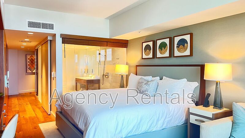 Units come with refrigerator, cooktop, oven, dishwasher, washer/dryer, and central AC. Rent includes water, sewer, and basic cable / internet. Building amenities include a concierge, exercise room, spa (additional cost), pool, on-site restaurants, on-site security, valet (additional cost), and room service (additional cost). Unit is located in Diamond Head Tower (Tower 2).