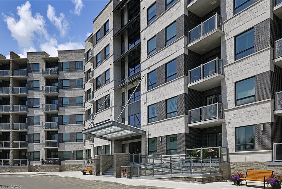 Discover over 1,200 square feet of thoughtfully designed living space in this bright and spacious 2-bedroom plus den condo, ideally situated on the ground floor of Milton's highly regarded Green Life community. Known for its innovative geothermal heating and cooling, this energy-efficient building offers sustainable living without compromising on comfort or style. The open-concept layout features a modern kitchen with a breakfast bar, a welcoming dining area, and a generous living room with a walk-out to your private patio perfect for enjoying your morning coffee or unwinding in the evening. Inside, the versatile den provides the ideal space for a home office, guest room, or hobby room. The 2 additional bedrooms are generously sized, and the primary suite offers ample storage thanks to a walk in closet, it also boast a 4pc bath with soaker tub and an abundance of natural light. This unit's prime location within the building puts you steps from all the essentials front and rear entrances, the elevators, the garbage chute, and your parking spots (one underground near the elevators and one surface spot close to the rear entrance) yet your new home remains impressively quiet and private thanks to excellent builder soundproofing. You're conveniently close to the gym, party room, and games room, making everyday living both accessible and enjoyable. Complete with a private storage locker and just moments to downtown Milton, the Milton Centre for the Arts, shops, restaurants, parks, and GO Transit, this condo is ideal for first-time buyers, downsizers, or investors alike.