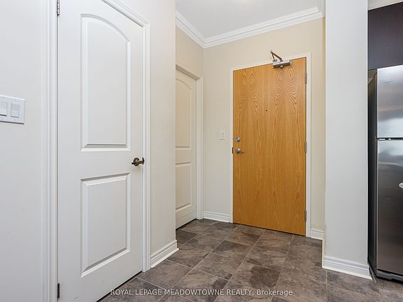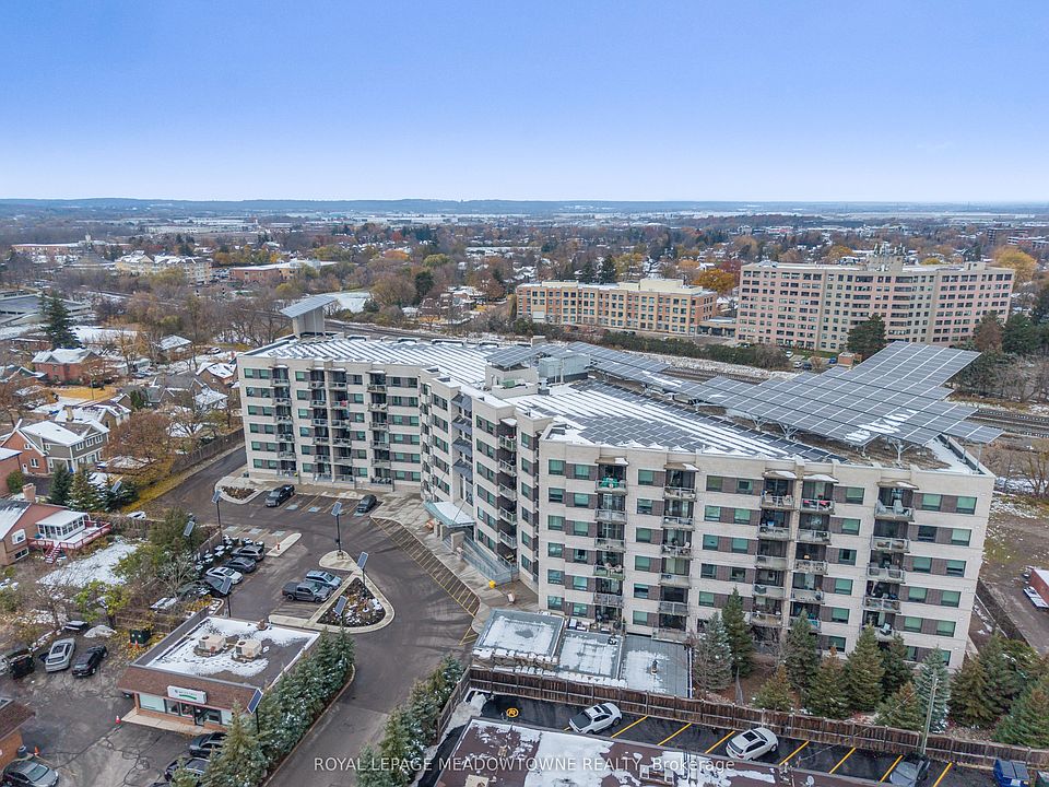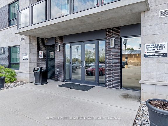 Welcome to GreenLife Downtown Milton! This impressive 2-bedroom, 2-bathroom condo offers 1,005 sq. ft. of comfortable living space in one of Milton's most desirable locations. Enjoy the benefits of a geothermal heating and cooling system, helping to keep utility costs low year-round. An open entryway welcomes you into the unit, featuring a large front closet and additional storage in the laundry/mechanical room. The kitchen is designed for both style and function, offering a large breakfast bar peninsula with pendant lighting and seating for four, stainless steel appliances, granite countertops, and plenty of cabinet space. The open-concept living and dining area is finished with laminate flooring and provides a walk-out to the south-facing balcony, where you can take in views of downtown Milton's Main Street. The spacious primary bedroom features cozy broadloom flooring, two large closets, and a private 4-piece ensuite complete with an oversized granite topped vanity, under-mount sink, separate shower, and deep soaker jetted tub. The second bedroom is generous in size with broadloom flooring and a large closet. A second full 4-piece bathroom includes a modern vanity with granite countertop and a tub/shower combo. This unit also includes one underground parking space and a storage locker for your convenience. This great building offers excellent amenities such as a fitness centre, party room, games room, and plenty of visitor parking. Perfectly located just steps from transit, shops, restaurants, and all that downtown Milton has to offer - this is urban living at its finest.