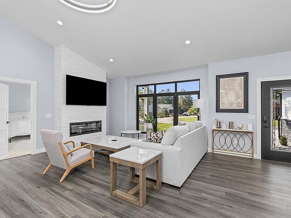Stone fireplaceExpansive open floor planSleek countertopsScenic viewsElegant finishesGourmet kitchenWaterfall kitchen island