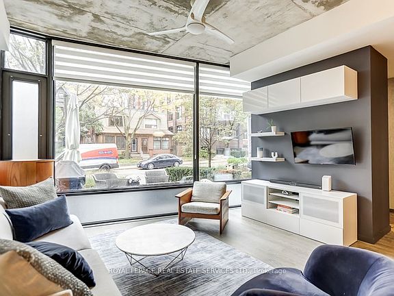 Experience elevated urban living in this architecturally acclaimed residence at 383 Sorauren, an award-winning boutique building blending industrial design with modern comfort. Offering the best of loft-inspired living in Roncesvalles. Soaring concrete ceilings and expansive windows create an airy, open-concept space perfect for entertaining. Rarely offered unit over looking it's own private large terrace, great for summer bbq's, a rare opportunity from one of Toronto's most desirable neighbourhoods. Townhouse features large kitchen with custom over-sized island and integrated appliances including gas range. Spacious living and dinings areas allow for hosting inside or out. Second floor allows for an additional play or workspace and laundry. Located within the catchment area of some of the top ranked schools, including Howard Junior Public School, Fern Avenue Junior and Senior Public School. Vincent de Paul Catholic school.
