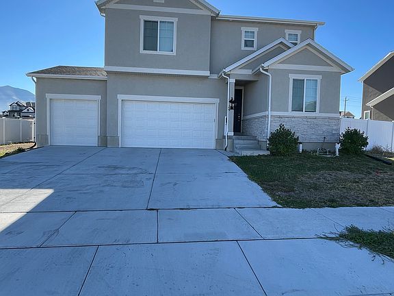 SELLER FINANCE AVAILABLE WITH A DOWN PAYMENT OF $87,500 AND INTEREST RATE OF 5.756% AND A 9-YEAR BALLOON. Built in 2021, this nearly new property features a stunning kitchen with quartz countertops and modern finishes. Enjoy a full bathroom and an additional bedroom conveniently located on the main floor. The open-concept design includes large sliding glass doors that fill the space with natural light, plus built-in speakers for added comfort and entertainment. The backyard is fully fenced, and the home offers a spacious 3-car garage with plenty of storage in the crawl space. Located just 30 minutes from downtown Salt Lake City and 25 minutes from the airport, you'll enjoy breathtaking mountain views and a prime location close to everything!