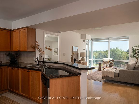 Welcome to Suite 606 at the VIVA, a bright and spacious 2 bedroom plus den condo offering 918 SF of open-concept living with treetop views and a private balcony. The split-bedroom layout provides privacy, with the primary bedroom featuring a 4-piece ensuite and walk-in closet. The versatile den works as a home office, dining area, or guest space. The kitchen includes stainless steel appliances, granite counters, ample storage, and a breakfast bar. Updates include hardwood floors, fresh paint, a new microwave and new light fixtures. Residents enjoy exceptional amenities including a 24-hour concierge, renovated fitness centre, sauna, party and billiards room & visitor parking. One parking and locker included. Located in Clanton Park &steps to shops, dining, transit, and minutes to Highway 401. Enjoy the perfect blend of comfort, convenience, and sophisticated urban living.