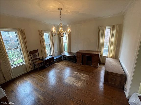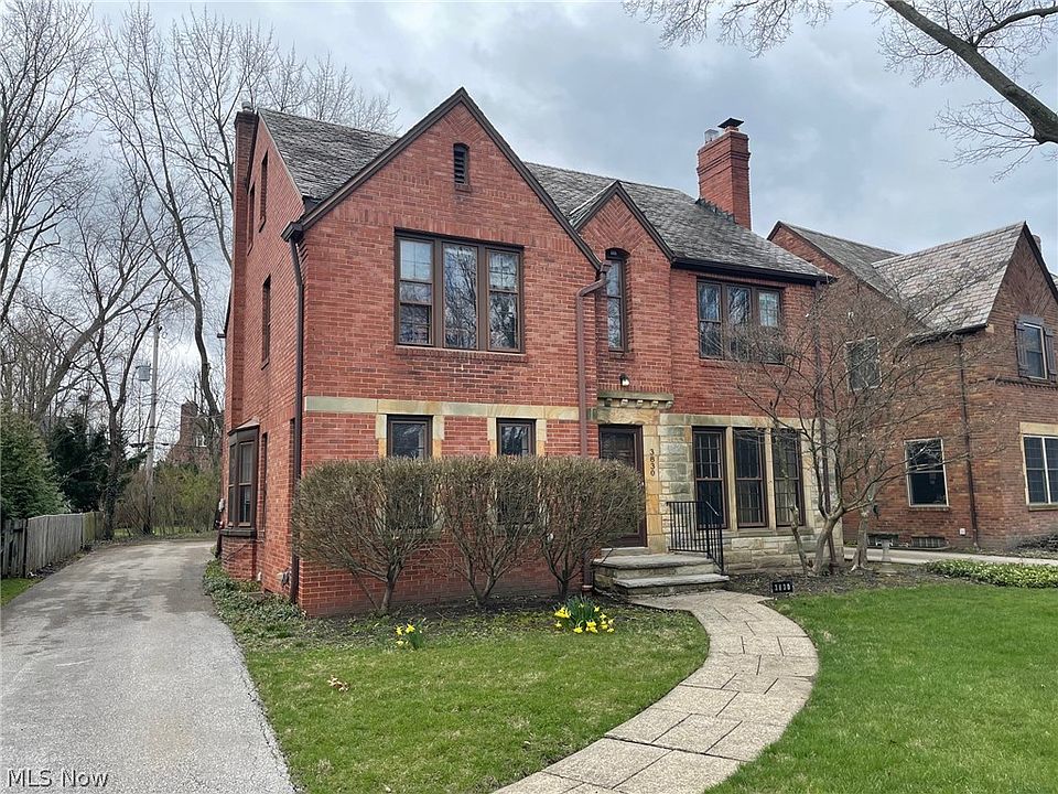 Well-cared-for home with brick exterior, slate roof, fantastic layout and oodles of space spread over four floors. Violation free except for concrete repairs. Needs updates and TLC from a new owner. Hardwood floors on 1st and 2nd floors. Newer furnace and new hot water tank (2023). First floor with attached two-car garage, decent-sized kitchen with appliances, small dining area off of kitchen, larger dining room, cool living room with built-in woodwork and wood-burning fireplace, wood-paneled den, and tucked-away half bath. Second floor with wrought-iron stairway railing, access to second floor deck over garage with new railing, and three spacious bedrooms – one with an ensuite bathroom and another with his-and-hers closets – as well as two full bathrooms. All rooms with plenty of natural light. Third floor features an additional spacious bedroom and yet another full bath. Basement has a retro, wood-paneled rec room with a full bar and fireplace, adjacent to the laundry room and mechanicals. Second floor deck could make a great outdoor space. A solid fixer-upper in a great location close to Fairmount Circle, University Circle and downtown!