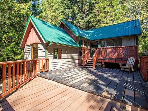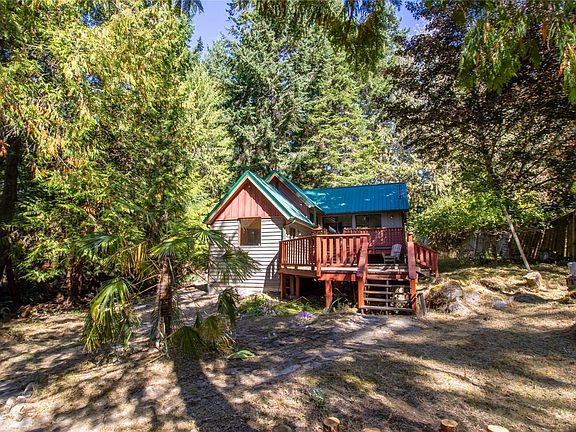 Welcome to this character-filled 1 bedroom, 1 bathroom cedar-sided cabin, tucked away on a quiet cul-de-sac in the heart of Magic Lake. With oversized wooden decks, exposed beams, and warm wood floors, this home radiates island charm inside and out. The level, fully usable 0.46-acre lot is connected to community water and sewer and features a grove of cedars, along with pear and apple trees. There’s plenty of space to expand your garden or simply enjoy the natural surroundings. The home has been freshly painted, and the metal roof recently cleaned, making it move-in ready. As part of Magic Lake Estates, you’ll have access to nearby tennis courts and Thieves Bay Marina—an exclusive perk for residents. Whether you’re seeking a cozy full-time home, a peaceful weekend escape, or a smart rental investment, this little gem offers rare character and a serene setting that doesn’t come along every day.
