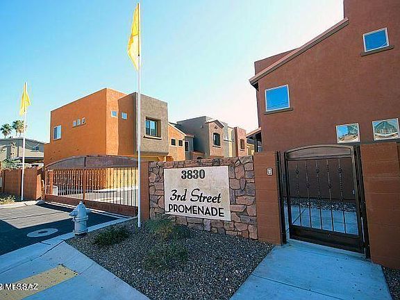Gated Entry in great urban location! 3BR/2.5 Bath, 2 car garage quality built by Cornerstone homes. Granite counters in open kitchen, great room, pantry, nice ceiling heights & appl. included. Custom painted, 18'' tile floors on first floor.. AVAILABLE FOR QUICK MOVE-IN!Home & carpets cleaned. New microwave recently installed. Dual Pane Windows,Finished 2 car garage and close to U of A, downtown & on 3rd St. bike path. Contemporary design built in 2014. A great place to live in Tucson!