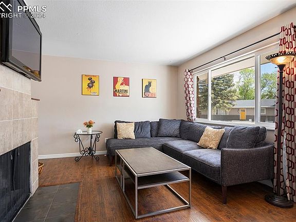 Step into this captivating, raised ranch home nestled in the coveted Holland Park neighborhood. Situated on a sprawling corner lot, this home boasts an enviable location mere minutes from many local attractions, such as Garden of the Gods, Ute Valley Park, Pulpit Rock, Old Colorado City, Manitou Springs, and downtown Colorado Springs. As you cross the threshold, you're welcomed by the warm embrace of the inviting living room, where ample space invites you to unwind in front of the crackling fireplace. Follow the natural flow into the dining room or the eat-in kitchen, featuring a convenient coffee bar, sleek stainless steel appliances, and seamless access to the composite deck overlooking the low-maintenance backyard oasis. Complete with a concrete patio and a tranquil hot tub nestled beneath a charming gazebo, this outdoor sanctuary is tailor-made for relaxation and entertainment. Venture down the hall to discover the expansive main bedroom, offering an abundance of closet space and a serene retreat from the world. Two additional bedrooms and a full bathroom round out the main level, providing ample accommodations for family and guests. Descend into the basement to discover a versatile family room with a wood burning stove, primed for a myriad of entertainment options and cozy gatherings. Here, you'll also find the fourth bedroom, another full bathroom, and a convenient laundry room, ensuring effortless functionality for everyday living. Basement access to the oversized two-car garage boasting separate overhead doors and ample space for a workshop or additional storage. Don't miss your chance to experience the epitome of Colorado living - schedule your tour today and prepare to fall in love with your new forever home. Be sure to click on the virtual tour links for an immersive video walkthrough and interactive virtual tour!
