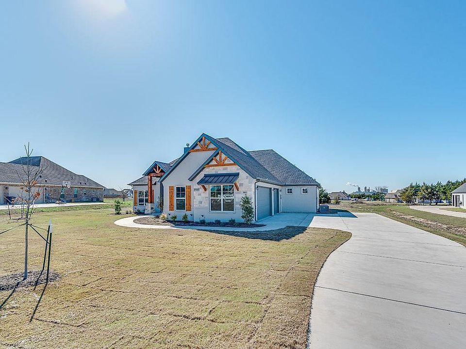 This True Custom Home features a Painted brick Exterior Gorgeous Hand Scraped Wood Floors in main areas. Designer Tile In Kitchen, Nook, Utility and Bathrooms. Resistant Carpet in Bedrooms Large Utility Room with Cabinets and Drip Dry Hanging. Beautiful Office Featuring Custom Trim and Double Doors. Chef's Dream Kitchen With Custom Cabinets, Modified Shaker Doors Floating Shelves Gorgeous Granite Countertops and Farm house Sink. Whirlpool Appliances and Beautiful Decorative Backsplash The Kitchen Opens Up To Living Room and a Wood Burning Fireplace With Stone Face. Oversized Master Bedroom and Master Bathroom with Luxurious Walk In Shower and Slipper Tub. This home is a must see! Move In Ready November 2019!