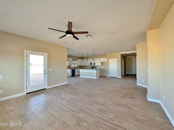 Brand New Home on over 1/3rd acre lot! Cobblestone walk way opens up to 1600 sq. ft of upgrades galore. Open/Great room floor plan, Island kitchen with two pantries, stainless steel appliances, built in microwave, Granite counters plus breakfast bar. Beautiful tile flooring with carpet in the Bedrooms & 9 ft. ceilings. Lots of recessed lighting in kitchen and living room, ceiling fans, window coverings and 2-tone paint throughout. DBL vanity in Master bath., gorgeous tile shower w/shower doors plus walk in master closet with shelving. 2nd bath also has tile surround. Tile roof, block fencing, Energy Efficient Spray Foam insulation & a 3 car garage with drive thru access to back yard., Pavered Drive way, 2 RV gates! & RV parking plus a Matching Storage Shed/Work Shop!