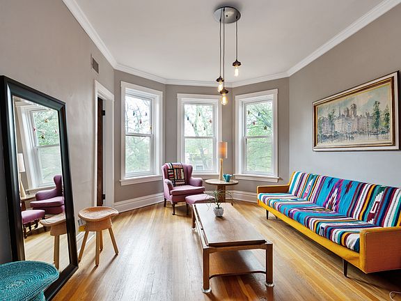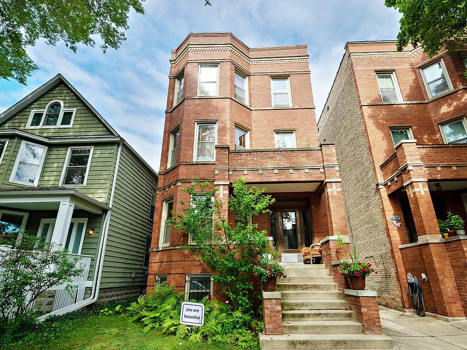 Top floor, sun drenched charming 3 bedroom condo in Bell School district. Move on to the best block in St. Ben's! Spacious living areas, separate dining room, built-in hutch, soaring ceilings & hardwood floors throughout. Kitchen with 42" cabinets, granite, subway back-splash & stainless steel appliances. Luxurious bath w/ natural stone, separate shower & large 6' soaking tub. Central air, in-unit washer/dryer, storage, large 3 season porch, common backyard patio & front yard sitting areas. Walking distance to Roscoe Village, new North Center town center, brown line and many restaurants, bars and shops. Low assessments and well-managed building.