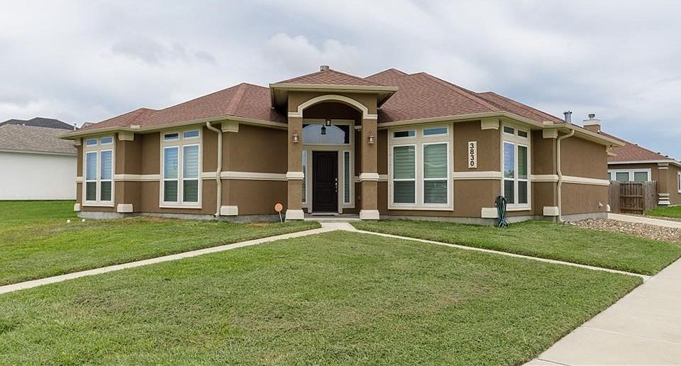 Stunning Southside home! This 4-bedroom, 2-bath stucco home on the Southside features an open-concept floorplan with high ceilings, crown molding, decorative arches, and abundant natural light from energy-efficient Low-E windows. The gourmet kitchen offers a gas cooktop, vent hood, tiled backsplash, granite counters, custom cabinets, stainless steel appliances, a double island, breakfast bar, and pantry, all opening to the dining and living areas with recessed lighting and a stone fireplace. The primary suite includes a spacious bedroom, dual sinks, a tiled walk-in shower, and a custom closet with built-ins. Secondary bedrooms are generously sized with ample closet space. Energy Star efficiency, plantation shutters, rain gutters, surround sound wiring, and a 30-year roof add to the value. Enjoy the covered patio, large yard, and side-entry garage with room for boat or trailer parking. Conveniently located near Veterans Memorial High School, shopping, NAS-CC, and SPID.