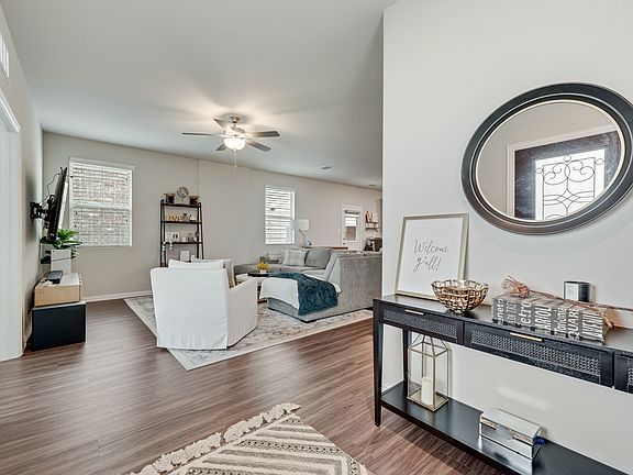 Modern and energy-efficient 3-bedroom, 2.5-bath home featuring a dedicated office and upstairs game room. Open-concept design filled with natural light and stylish finishes throughout. The kitchen offers a large granite island, ample counter space, and stainless steel appliances. Home comes furnished with stainless refrigerator, washer, dryer, and dining table. Primary suite includes a spacious layout and walk-in closet. Community amenities feature a pool and walking trails. Prime location near Firewheel Town Center, shopping, dining, and easy access to PGBT for quick commutes. Available January, earlier move-in possible depending on offer.