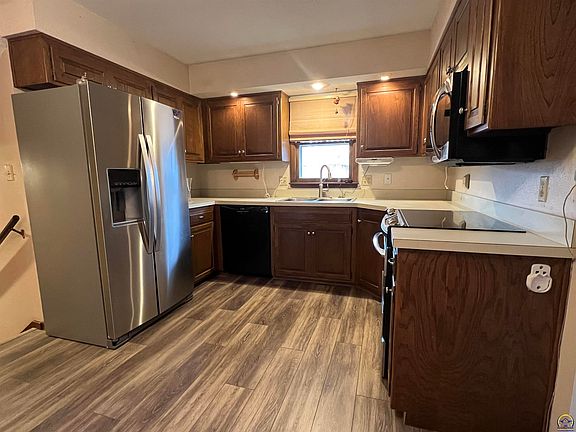 Charming home in Shawnee Heights School District! Split level with open and comfy living space. Family room has wood floors with fireplace and french doors that open up to fenced backyard w/in-ground pool. New refrigerator, kitchen flooring, furnace & roof 2022.