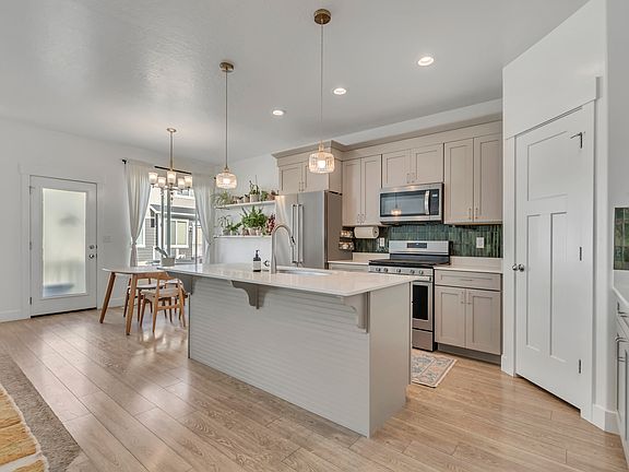 Perfectly positioned in the heart of Utah's high-growth Silicon Slopes corridor and just minutes from Thanksgiving Point, this thoughtfully designed townhome places you close to recreation, entertainment, shopping, and dining, with even more exciting development on the horizon. Step inside to discover an open-concept layout filled with natural light from the soaring ceilings and large windows. The kitchen showcases upgraded quartz countertops, stainless steel appliances, a spacious island, and stylish lighting that creates a warm and functional centerpiece for daily living. Upstairs, the primary suite serves as a peaceful retreat with its vaulted ceiling, dual-vanity bathroom, and walk-in closet. Two additional bedrooms and a full bathroom create space for family, guests, or a home office, and the nearby laundry area adds everyday convenience and functionality. The unfinished basement provides valuable storage space today and room to grow tomorrow. It can accommodate a future family room, bedroom, and bathroom to increase livable space and overall value. The community includes open green space, playground, a basketball court, fitness center, clubhouse, and seasonal pool. Just a short walk away, Holbrook Farms Park features additional outdoor enjoyment with pickleball courts, scenic trails, and open areas for recreation. Buyer to verify all information.