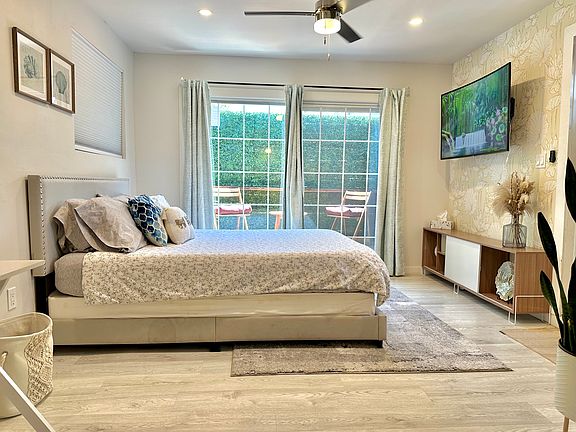 Utilities are included. Centrally located fully furnished house with wall AC available for rent. This is a fully permitted one-car garage converted studio. We have a working jacuzzi, a weight lifting gym and a fire table in the back yard that are available for our tenants' use. The back yard is a shared space with the other two rental units on the same property.