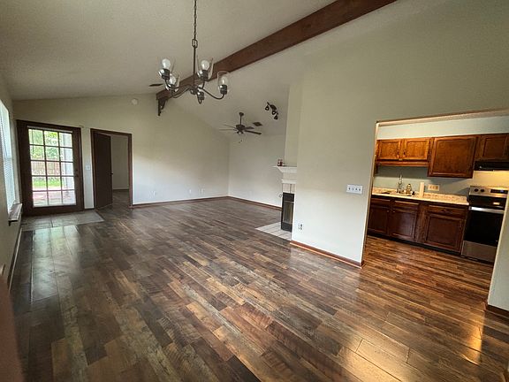 Large stainless refrigeratorSmall firepitIn house laundry roomVaulted ceilingWalk in closetSlide door