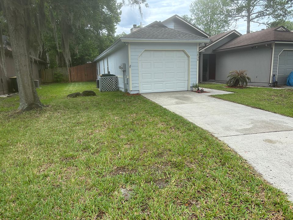 Comfortable 2 bedroom 2 bathe townhouse, nestled in the center of Mandarin. The spacious living room is complimented with vaulted ceiling, fireplace and wall connects for wall mounted tv (wall mount and Tv are not included). In house laundry room with washer and drier. Kitchen has large Stainless refrigerator, dishwasher, oven and pantry. Master bedroom is spacious with walk in closet, attached bathroom and ceiling fan/light. Second bedroom has closet, celling fan/light and slide door to access center (recently renovated) bathroom, Built in Garage. Fenced back yard with deck that leads to storage shed, overlooking grass back yard to a small firepit. Front and rear yard service are also included. Located in a great, quiet neiborhood. Most grocery stores and shopping are within minutes. Family parks are also nearby. Approx. 30 minutes from the beaches, TownCenter shopping Plasa, Jaguars Stadium and or most attractive features Jacksonville has to offer!