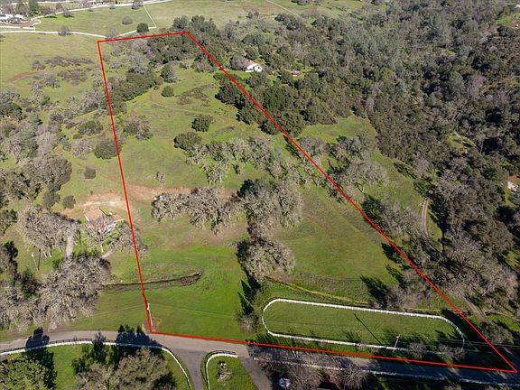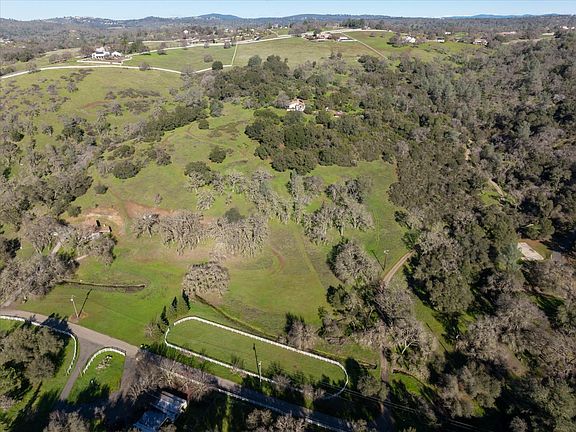 Top of the hill views possible on this oak studded 10 acre lot! Capped well produces approximately 100gpm per the seller. Bring your horses and take advantage of the vinyl fence horse arena. Get the best of both worlds with a private rural feel yet just 12 minutes from HWY 50 and town center shopping.