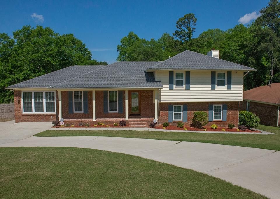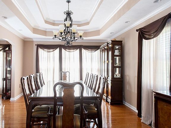 Beautifully remodled home with high end finishes. Hardwood flooring throu, textured ceilings throughout, custom crown molding throughout, custom built cabinets with soft close drawers throughout the home, kitchen cabinets include wine rack, under and above cabinet lighting, glass backsplash, large pull out drawer pantry, granite countertops, recessed lighting, custom built in 46 TV cabinet. Custom made blinds in kitchen, formal dining room, and den. Stainless steel appliances with gas stove/ warming drawer/ convection oven, built in Microwave and dishwasher, formal dining room has double tray ceiling/ chandelier, dimmers on kitchen, dining room, upper hallway lights, laundry room with pocket doors/ sink, all bedrooms with ceiling fans/ light kits, Master bedroom has added tray ceiling, all baths have tiled flooring/ surround tile walls, soaker tubs/ shower in full baths, matching cabinetry with concrete countertops, 3/4 bath with shower stall.