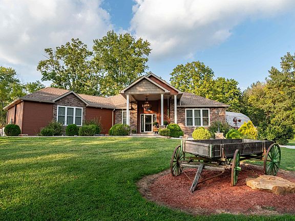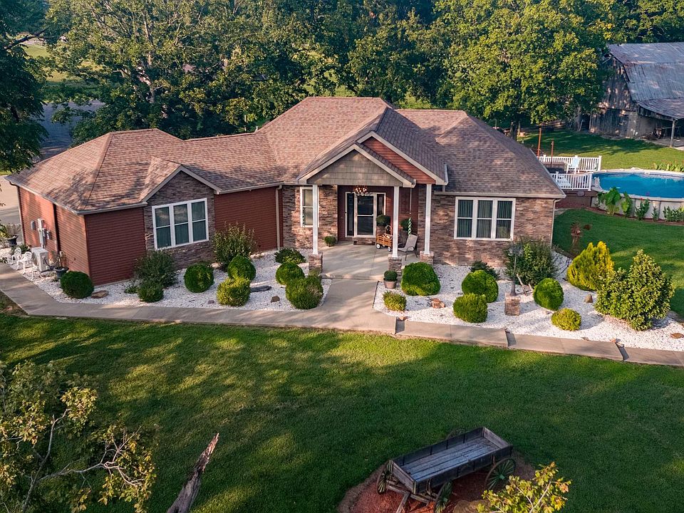 Just SHUT THE FRONT DOOR to the extra tall, covered front porch on this 3400 square foot “Cottage on the Hill”, with 4 bedrooms and 2 ½ baths. Ease on up the back driveway to the oversized 2-car attached conditioned garage with a wet bar where you can entertain those you love. Walk into the open concept main living area with 12’ ceilings to include a kitchen with a double oven and oversized cooktop stove to delight the inner chef in you. There are two utility rooms, one on the main level, as well as one on the basement level. Open the back door to a large covered two-tiered deck for your outside living enjoyment. This deck connects to a 20’ x 12’ sundeck with a 28’ round by 4’ deep above ground resign Tuscany Doughboy swimming pool. All this overlooking the large 6 acres (m/l) property with a 50’ x 40’ historic rustic barn as well as a 40’ x 30’ x 10’ pole barn with spray foam insultation. For the outdoor enthusiast, take a walk or an ATV ride through the wooded trail on the property. Come take a look, with $15.00 a month electric bills, we’ll leave all the lights on for you. Extra amenities include: 400-amp electric service,100-amp electric service in Pole Barn, The historic barn has electrical outlets. Solar Panels w/$15.00 monthly utility bills, Geothermal heating and cooling system, Heated and cooled attached garage with 2-ton mini split. Spray Foam Insulation through out to include Pole Barn. Two 50-gallon water heaters. Two 50-amp RV hook-ups