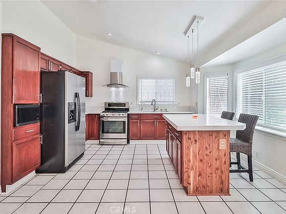 This is an updated and energy-efficient home, situated on more than a 7,700-square-foot lot with three bedrooms and two bathrooms. As you approach the home, you’ll first notice your newer drought-resistant and low-maintenance yard, which is complete with high-end turf and a protectant weed barrier. As you walk through your front door, you are greeted by your living room, which includes extra tall ceilings, ample natural lighting, a fireplace, recessed lighting, and wood laminate flooring. You’ll find your kitchen and dining room just off from your living room. The kitchen is updated, including an eat-in island, quartz countertops, stainless steel appliances, extra-tall ceilings, and recessed lighting. All bedrooms and bathrooms are located down the hall, just off the living room. Your primary suite is large and has extra-tall ceilings, including an ensuite bathroom with extra storage and a large walk-in closet. Both secondary bedrooms are ample-sized, and one includes a walk-in closet, providing plenty of storage space. Your laundry room is conveniently located at the end of the hall and has a newer energy-efficient washer and dryer. The property also comes with solar panels and a newer AC unit, helping to keep your energy costs low. The backyard includes a patio covering and newer fencing, but it is a blank slate you can make your own. It is located moments from a park, stores, and restaurants. Don’t forget to ask about improved interest rates through the Community Lending program for which this home is eligible.