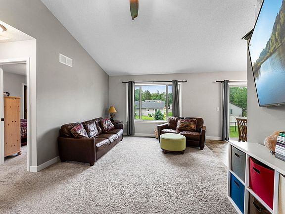 Welcome to this charming 3 bedroom, 2 bath home nestled in a popular, family-friendly neighborhood. Step inside to vaulted ceilings and a well-designed floor plan. The kitchen features a cozy eat-in dinette area, plus a formal dining room-perfect for everyday meals and special gatherings. A recently finished basement adds versatile living space, ideal for a family room, play area, or home office. The attached 3-stall insulated garage provides comfort and convenience, especially during Minnesota winters. Located just minutes from all the local schools, this move-in ready home combines space, functionality, and a location you will love!
