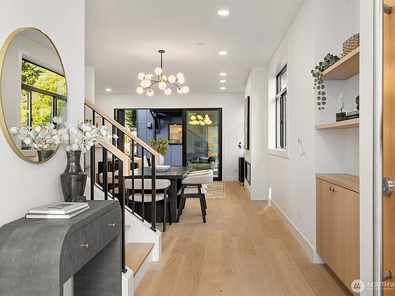 Beautiful & thoughtfully designed, custom Magnolia home combines luxury w/practicality.Open concept is abundant w/natural light via high ceilings & oversized windows. Dining area, great rm w/gas fpl, & high-end kitchen w/ 2 Nanawalls open to outdoor covered seating & lush, private yard. Current finishes & styling. Full ensuite bed/bath, powder, mud room, & 2 garage w/ EV charger on main. Mini splits. Elevated style continues upstairs w/vaulted ceilings, luxurious primary suite, 2 add'l bed/baths, family rm, & laundry. A 2 BR/1.5 BTH DADU for endless possibilities. Quiet location close to playfields, Magnolia Village, Discovery Prk, Met Market, Locks + easy distance to Ballard & Downtown Seattle. Bluetooth speakers. Builder Bluetooth w/t