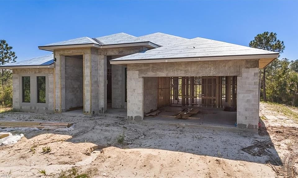 Luxury living awaits in this brand-new Haven Builders home—trusted for over 30 years, crafting exceptional residences in Naples, Florida. This stunning 3-bedroom plus den single-family residence offers 2,349 square feet of meticulously designed interior space, featuring soaring ceilings, an open great room floor plan, and 10-foot impact sliders. The custom island kitchen includes a wall oven and cooktop, within a thoughtful layout that seamlessly blends elegance, functionality, and state-of-the-art design. Step outside to embrace the Florida lifestyle with 679 square feet of covered outdoor living, complemented by a generous 1,200-square-foot pool deck and spa—ideal for entertaining or relaxing in paradise. The outdoor kitchen features a grill, beverage cooler, and sink, with the option for an outdoor fireplace (gas line already run). Nestled on a sprawling 5-acre lot (100% uplands for optimal buildability), the home is positioned on the right side of 2.5 acres, offering ample potential for future subdivision with county approval. Currently about 50% complete, this is your chance to personalize the finishes and make it truly yours. Secure your slice of serene Naples paradise.