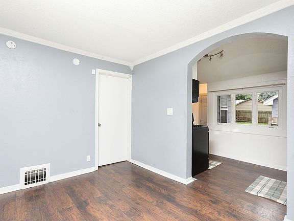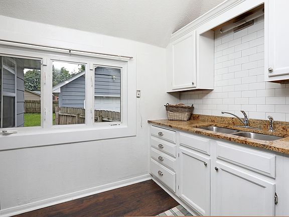 Stylishly tiled bathroomGleaming hardwood floorsUpdated kitchenGranite countertopsLarge fully fenced backyardCovered front porch