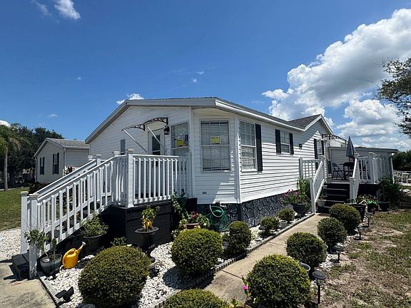 Manufactured Home on Leased Land with Lot Rent. Welcome to this charming 3-bedroom, 2-bath manufactured home located in a desirable all-age community in St. Cloud, Florida. The primary bedroom features a private en-suite bathroom, while the second and third bedrooms, along with the additional bath, are situated on the opposite side of the home for added privacy. The open-concept living and dining areas create a comfortable space for family gatherings and entertaining guests. Relax on the front porch or step into the backyard, where you'll find a wet bar, patio furniture, and beautiful lake views-perfect for unwinding or hosting friends. The community offers excellent amenities, including a swimming pool, basketball court, and clubhouse. Nearby, you'll find grocery stores, pharmacies, coffee shops, auto shops, and more, making day-to-day living convenient and enjoyable.
