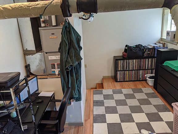 Loft style bedroomBasement apartmentGarden apartmentExtremely high ceilingsCentral air