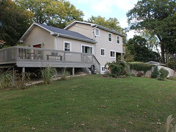 Sitting on 3 parcels to total over a 1/2 acre this home is a must see in person kind of home. The large outdoor space that flows perfectly into the home making for great entertaining. Located on a deed end street this home features updated kitchen with custom soft close cabinets, granite countertops, under mount lighting, double stainless steal oven, oversized side by side refrigerator, Moen fixtures, and Led lighting throughout. The entire second floor is your private primary suite with a walk in closet, primary bath with jacuzzi tub, rain and handheld shower heads, travertine tiles, custom extra wide shower, heated bathroom floors, skylights and walkout access to the upper private deck. Bonus room/office in finished part of basement, unfinished portion of basement full access door to the outside. House is located on two lots totaling .34 acres located just blocks from the lake. PIN 0134316005 4594.62 (.1738 ac) PIN 0134316006 216.12 (.1736 ac) PIN 0134316017 202.58 (.1706 ac)