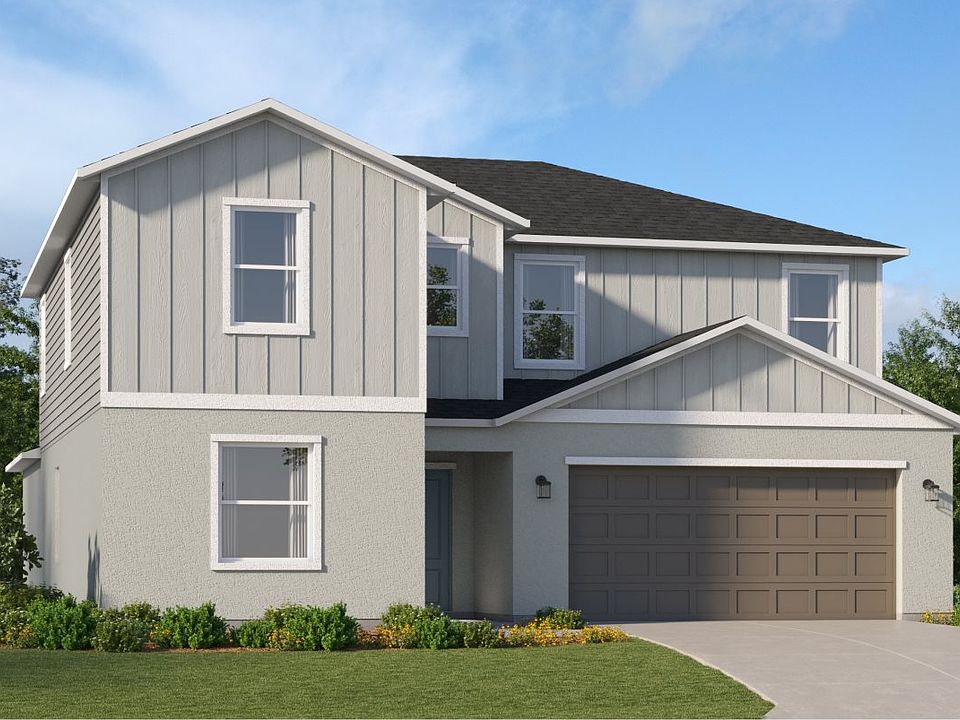 The first floor of this two-story home shares an open layout between the kitchen, dining room and family room for easy entertaining and access to a patio. A luxe owner's suite is in a rear corner of the first floor, while a secondary bedroom is at the front, perfect for overnight guests, as well as a flex space which can transform to meet the homeowner's needs. Upstairs are four secondary bedrooms and a loft for added living space.