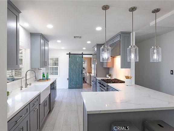 Nestled in the prestigious community of Bixby Knolls in Long Beach, this stunning remodeled home offers an unparalleled blend of luxury, comfort, and tranquility. This home boasts three spacious bedrooms all with good sized closets and two bathrooms, making it the perfect sanctuary for families, couples or even singles who may want to house hack. The front entrance is adorned with a brick walkway and a ring camera. Stepping through the doorway, you are greeted by an open and inviting floor plan with refinished original hardwood floors. The heart of the home is the primary suite, where natural light floods the space through large windows and french doors. The primary suite is a true retreat as his luxurious space includes a bathroom that features dual vanity, a soaking tub, a separate walk-in shower, and a very spacious walk-in closet is conveniently nestled in the hallway between the primary bedroom and bathroom. The gourmet kitchen is a chef's dream, equipped with stainless steel appliances (including Viking Refrigerator, Viking 6 burner stove, Viking vent, newer dishwasher and built-in microwave), beautiful countertop, modern cabinetry, and a peninsula that doubles as a breakfast bar. Next to the kitchen is a dining area, perfect for hosting dinner parties and family gatherings. A laundry room between the kitchen and the primary bedroom is both convenient and efficient. The backyard is great for entertainment. A detached 2-car garage with beautiful french doors is perfect for a home gym or possibly an ADU conversion (buyer to check with city). The community is known for its history like Ranchos Los Cerritos and Virginia Country Club, community events like First Fridays and nearby parks, freeways, hospitals, shopping and much much more. The area offers an array of restaurants and retail establishments, catering to all tastes and preferences. You’ll truly enjoy the meaning of true homeownership in this vibrant community. This is an exceptional opportunity for those seeking the best of Bixby Knolls living. Don’t miss your chance to own this exquisite property that perfectly balances comfort and modern conveniences.