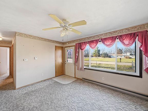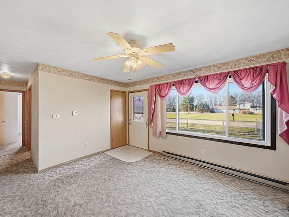Country living just minutes from town. This 3 bed, 1 bath ranch home on double lots just needs a little sweat equity to make it your own. Nice size eat-in kitchen with plenty of cabinet/counter space. Breezeway off the kitchen connecting the 2 stall garage. Great space for summer evenings! 1 of the bedrooms has washer dryer hookups, these could be easily removed. New roof on garage and breezeway 2022. New private well and pressure tank 2015.
