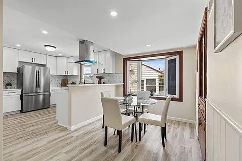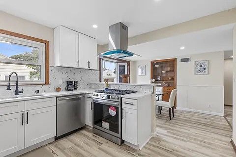 Range hoodFinished basementDetached garageTile backsplashNew roofNew cabinetry